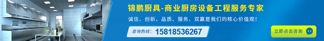 錦鵬廚具是一家專業(yè)從事星級(jí)酒樓、食堂、學(xué)校、餐廳、工廠、機(jī)關(guān)、醫(yī)院等商用中央廚房設(shè)備工程設(shè)計(jì)售后維修保養(yǎng)為一體的現(xiàn)代化企業(yè),廚具設(shè)備廠家。承接不銹鋼廚房廚具、酒店廚房設(shè)備工程、不銹鋼廚房設(shè)備工程、商用廚房工程設(shè)計(jì)及制冷制熱系統(tǒng)工程。業(yè)務(wù)范圍覆蓋廣州、深圳、東莞、佛山、惠州等地,公司依據(jù)客戶要求和現(xiàn)場(chǎng)實(shí)際情況精心設(shè)計(jì),合理安排,創(chuàng)造節(jié)能環(huán)保優(yōu)質(zhì)產(chǎn)品和熱情服務(wù)。